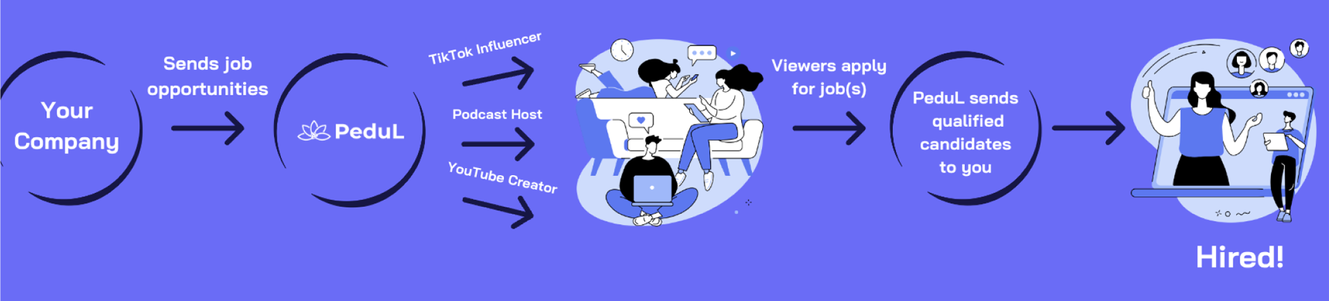 By partnering with content creators and harnessing the power of social media, we promote job opportunities to thousands of targeted candidates. We convert viewers into candidates and deliver qualified applicants directly to you.